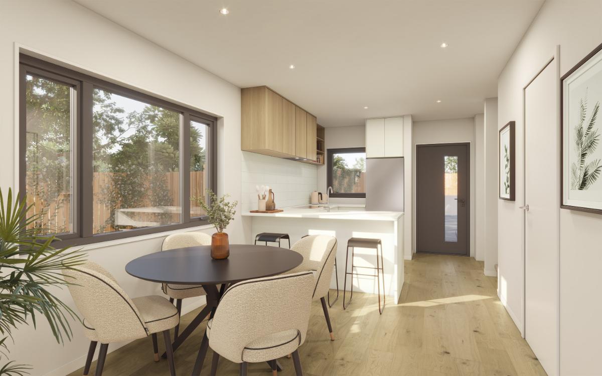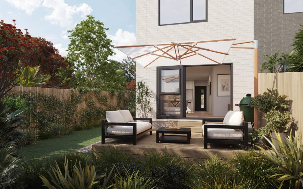 Positioned in an elevated setting, these homes capture open outlooks across the neighbourhood. Situated in Birkdale on Auckland’s North Shore, the location is growing in popularity with young families who value community and convenience.